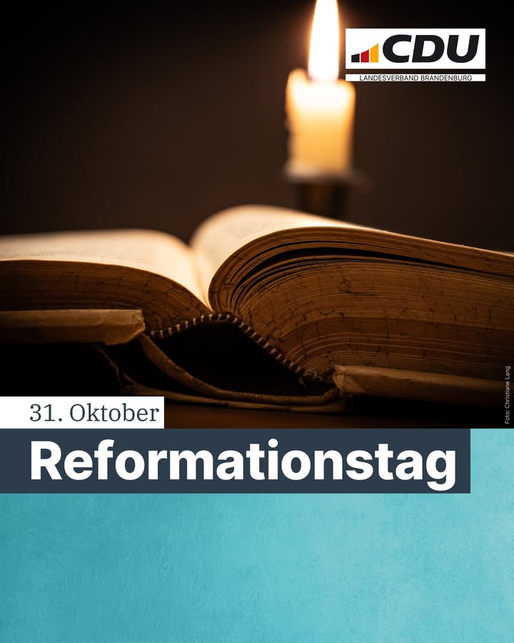 mehrVor über 500 Jahren stellte Martin Luther mutig Fragen, die die Welt veränderten. Sein Ruf nach Verantwortung, Bildung und Freiheit des Gewissens prägt unser Wertefundament bis heute. 🙏Gerade in Zeiten des Wandels erinnert uns der Reformationstag daran:👉 Veränderung braucht Mut.👉 Glaube gibt Halt.👉 Gemeinsam können wir Neues schaffen.Wir wünschen allen Brandenburgerinnen und Brandenburgern einen gesegneten und besinnlichen Reformationstag! ✨#Reformationstag #MartinLuther #MutZurVeränderung #CDU #Brandenburg #Glaube #Werte
