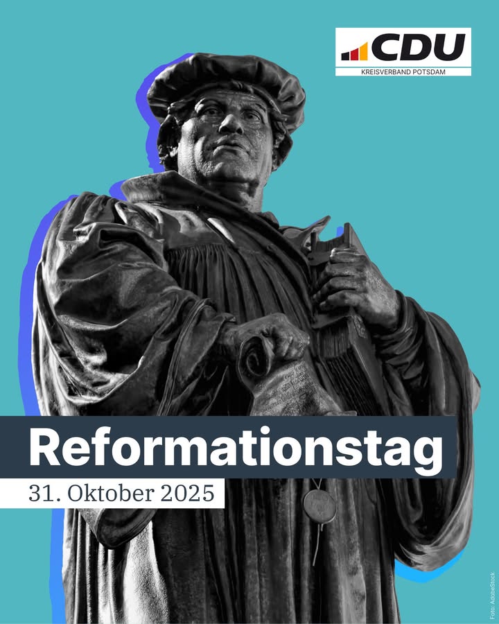 mehrHeute gedenken wir des Reformationstags ? eines Tages, der für Glauben, Verantwortung und Erneuerung steht.Die Reformation hat unsere Kultur und Werte tief geprägt: Eigenverantwortung, Gewissen und die Freiheit des Denkens gehören seitdem untrennbar zu unserer Geschichte. ✝️📖Diese Werte tragen auch heute ? in Kirche, Gesellschaft und Politik.#Reformationstag #CDUPotsdam #Werteverbinden #TraditionUndZukunft
