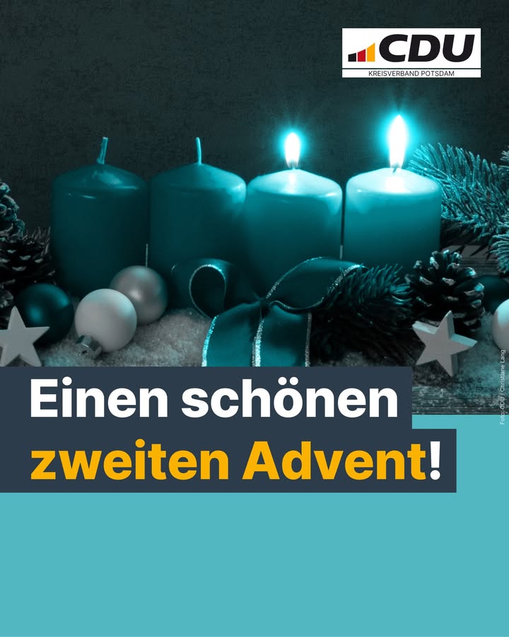 mehrDer zweite Advent erinnert uns daran, wie wichtig Zusammenhalt und Hoffnung in herausfordernden Zeiten sind. 🕯️Als CDU Potsdam setzen wir uns dafür ein, dass unsere Stadt ein Ort bleibt, an dem Menschen füreinander einstehen und Verantwortung übernehmen.Wir wünschen allen Potsdamerinnen und Potsdamern einen besinnlichen zweiten Advent! ✨