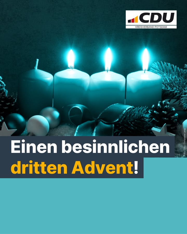 mehrDer zweite Advent erinnert uns daran, wie wichtig Zusammenhalt und Hoffnung in herausfordernden Zeiten sind. 🕯️Als CDU Potsdam setzen wir uns dafür ein, dass unsere Stadt ein Ort bleibt, an dem Menschen füreinander einstehen und Verantwortung übernehmen.Wir wünschen allen Potsdamerinnen und Potsdamern einen besinnlichen zweiten Advent! ✨